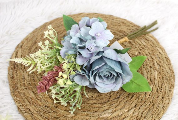 Bukiet mieszany RÓŻA, HORTENSJA wys. 32 cm, 5 łodyg w pęczku (2 kwiaty 7-6 cm) NIEBIESKI WT-191D