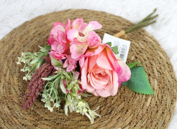 Bukiet mieszany RÓŻA, HORTENSJA wys. 32 cm, 5 łodyg w pęczku (2 kwiaty 7-6 cm) RÓŻOWY WT-191B