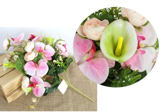 Bukiet mieszany STORCZYK, KALIA wys. 47 cm 9 łodyg (kwiaty 2,5-10 cm) RÓŻOWY MZ-310B
