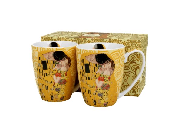 Komplet dwóch kubków 350 ml THE KISS ECRU by Gustav Klimt wchodzący w skład serii Art Gallery, wykonany z porcelany New Bone China, która charakteryzuje się naturalnym kremowo-białym kolorem z delikatnym połyskiem oraz wyjątkową wytrzymałością i trwałością, zachowując lekkość i finezję.