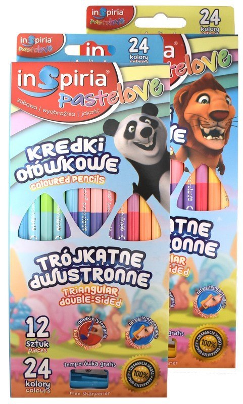 Kredki pastelowe dwustronne 24 kolory trójkątne 12szt. 7680