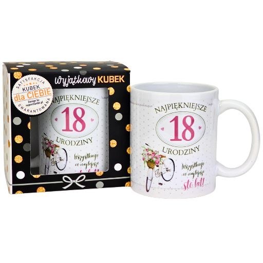 Taki kubek 18-stkowy sprawdzi się nie tylko jako prezent od rodziny, lecz również jako upominek od przyjaciół, koleżanek czy znajomych. Dzięki uniwersalnemu wzorowi oraz trwałemu wykonaniu będzie cieszył obdarowaną osobę przez długie lata.