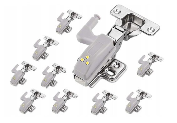 Kompaktowa lampka LED do montażu na zawiasie wewnątrz szafki. Uniwersalne mocowanie na zawias (w zestawie). Zasilana jest przez 1 baterię A23, która zapewnia długi okres użytkowania. Wyposażona w 3 jasne i energooszczędne diody LED z funkcją automatycznego włączania i wyłączania przy każdym otwarciu i zamknięciu szafki.