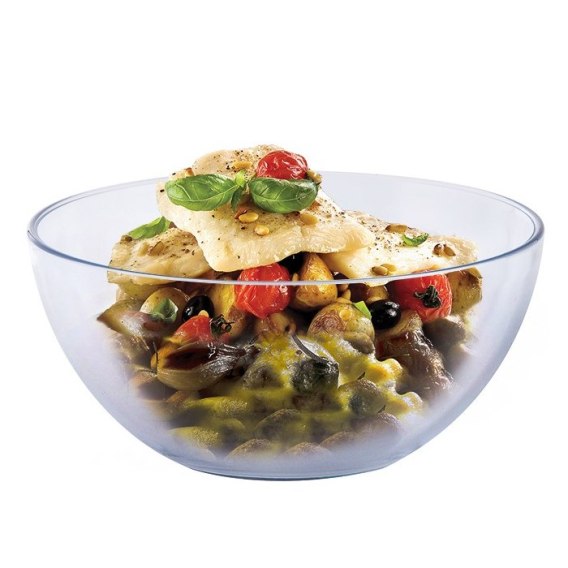 Miska jest idealnie przejrzysta, jej kształt jest tradycyjny, nie posiada żadnych zdobień. Doskonale sprawdzi się do sałatek warstwowych, pięknie wyeksponuje każdy składnik potrawy.