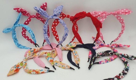 Opaska do włosów 12szt kokarda jaskrawa kropki 7595