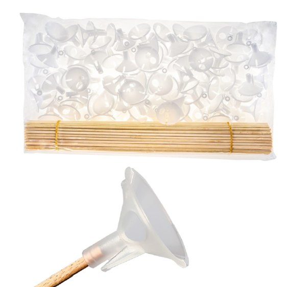 Patyczki drewniane z koszyczkami do mocowania balonów op.100szt. PB-40