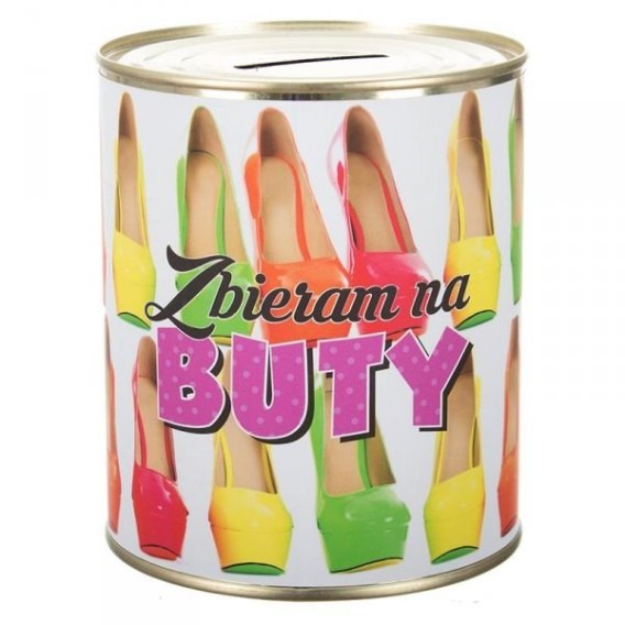 Skarbonka metalowa z napisem 'Zbieram na buty' 12x10 cm