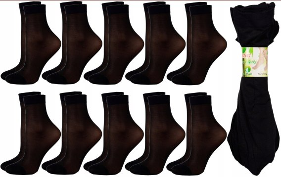 ZESTAW 10 par cienkich skarpet damskich rajstopowych z klasycznym ściągaczem.