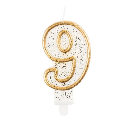 Świeczka cyfra 9 urodziny złoty kontur PF-SCZK9