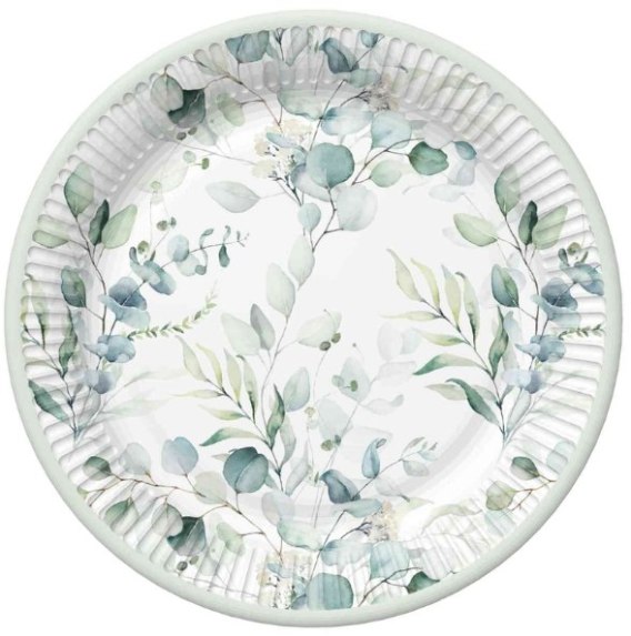 Talerze papierowe 22,7cm gałązki eukaliptusa 8szt. | 79-37