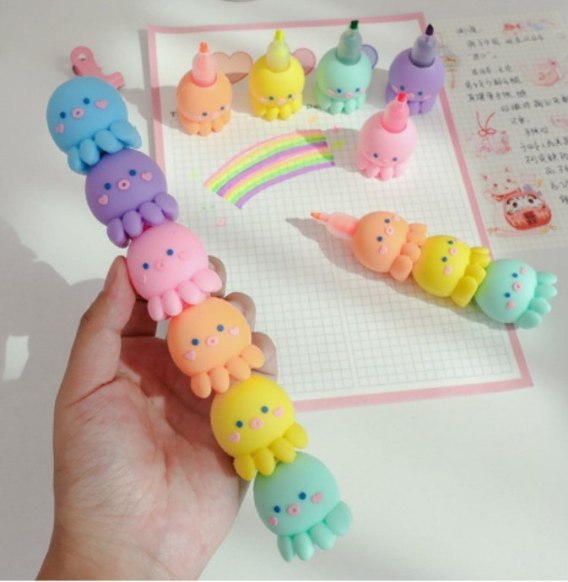 Zakreślacze pastelowe ośmiorniczki 5 kolorów | NT4586