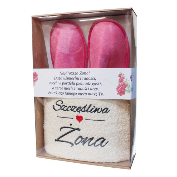 Zestaw prezentowy z ręcznikiem "Szczęśliwa Żona" i kapciami