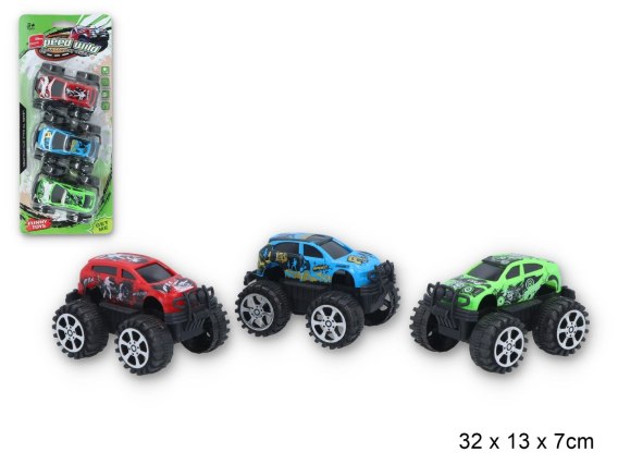 Te fantastyczne autka to idealna propozycja dla małych miłośników motoryzacji i kolekcjonerów. Każdy z trzech modeli wyróżnia się kolorową karoserią, solidnym, czarnym podwoziem i kołami. Mają 8,5 cm długości i występują w różnorodnych kolorach i wzorach, dzięki czemu świetnie nadają się do budowania kolekcji.