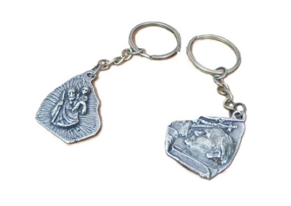 Brelok metalowy Św. Krzysztof / JP II trójkąt 10szt