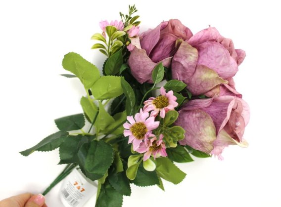 Bukiet RÓŻA wys. 40 cm 7 łodyg (4 główki róży 7x6 cm z dodatkami) FIOLETOWA WT-207A