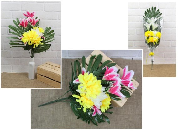 Bukiet sztuczny, wiązanka z LILIĄ w folii z wstążka 70 cm KAO-105
