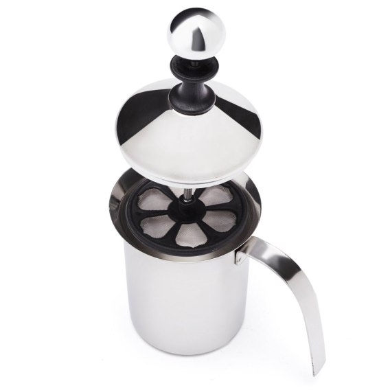 Ręczny mechanizm spieniania mleka lub śmietanki jest skuteczny i szybki. Pokrywka natomiast zabezpiecza przed rozchlapywaniem ubijanego produktu. Błyskawicznie przygotujesz mleczne dodatki do kawy.