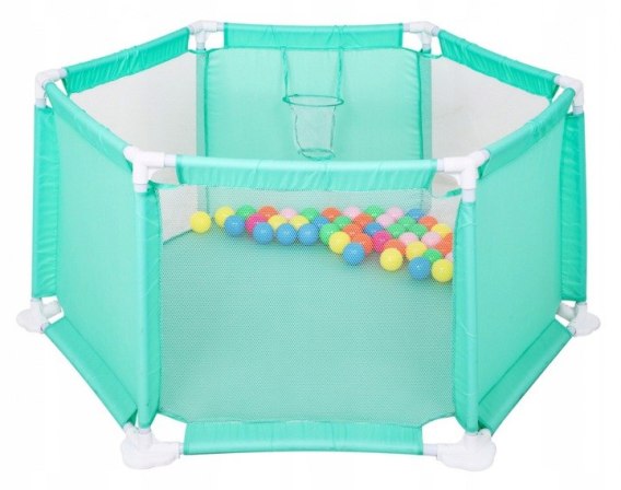 Duży stabilny kojec z piłeczkami to propozycja dla maluszków od 18 miesiąca życia. Daje dziecku przestrzeń do poruszania się bez ryzyka zranienia lub upadku. Kojec wykonano z bezpiecznych materiałów, nie zawiera ostrych i małych elementów, jest łatwy w czyszczeniu. Solidny stelaż zapewnia stabilność i wytrzymałość. Połowa ścian kojca wykonana została z przezroczystej siatki, cały czas możemy obserwować zabawę dziecka. Kojec można łatwo przenosić, z pomieszczenia do pomieszczenia, na zewnątrz do ogrodu, dzięki temu dziecko zawsze będzie bezpieczne podczas codziennych zajęć rodzica. Kojec wyposażony został dodatkowo w kosz do gry w koszykówkę oraz 50 piłeczek, może być stosowany jako suchy basen.