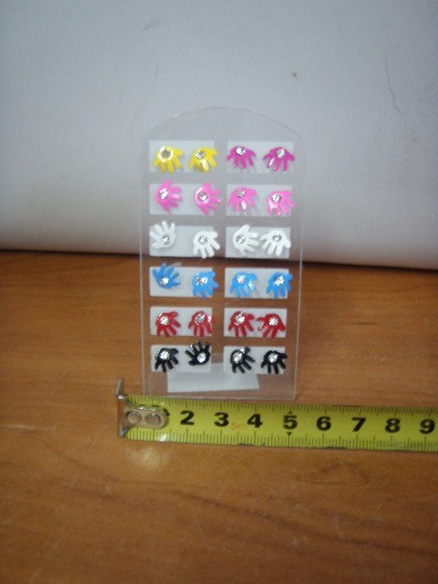 Kolczyki na stojaku 12par ręka z cyrkonią
