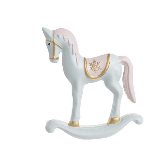 Konik na biegunach z drewna 14,5cmL x 3,5cmW x 17cmH. Cena za sztukę.