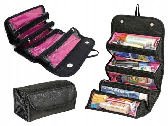 Kosmetyczka rolowana to idealne rozwiązanie na utrzymanie porządku w Twoich kosmetykach. Organizer turystyczny z pewnością pomieści wszystkie kosmetyki jak puder, kredki, szminki i inne akcesoria.