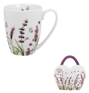 Kubek classic w koszyczku CLASSIC LAVENDER wchodzący w skład serii Duo Classics, wykonany z porcelany New Bone China, która charakteryzuje się naturalnym kremowo-białym kolorem z delikatnym połyskiem oraz wyjątkową wytrzymałością i trwałością, zachowując lekkość i finezję.
