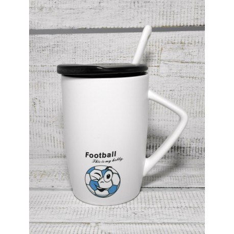 Kubek ceramiczny z przykrywką i łyżeczką 12-SH57