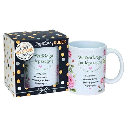 Ze względu na kompaktowe rozmiary oraz estetyczne opakowanie, produkt świetnie prezentuje się na półkach sklepowych. Natomiast kolorowy nadruk przyciąga uwagę klientów, którzy szukają wyjątkowych prezentów urodzinowych. Jeśli zależy Ci na atrakcyjnym, a jednocześnie funkcjonalnym upominku - ten kubek spełni wszystkie oczekiwania.