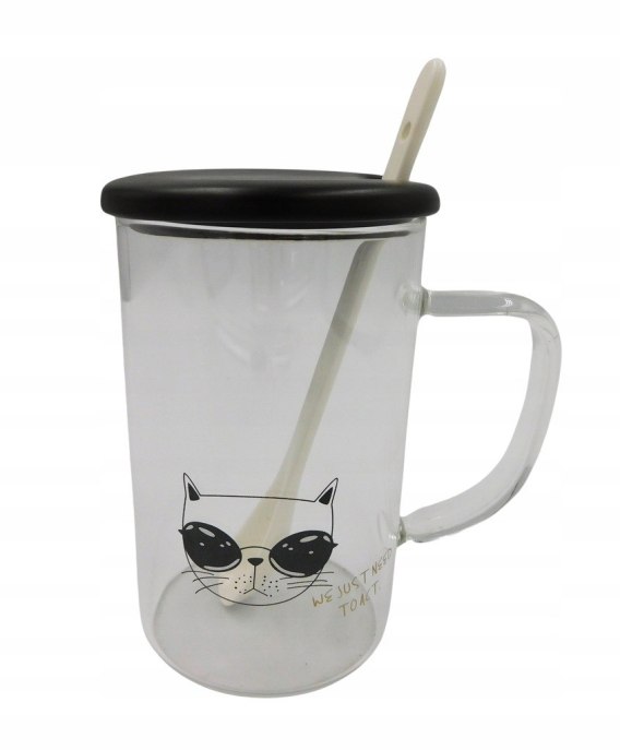 Kubek szklany + pokrywka + łyżeczka | 703-1004