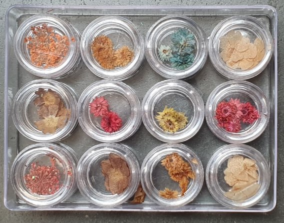 Kwiatki suszone do wtapiania w słoiczku - mix wzorów 12szt. | NA383L
