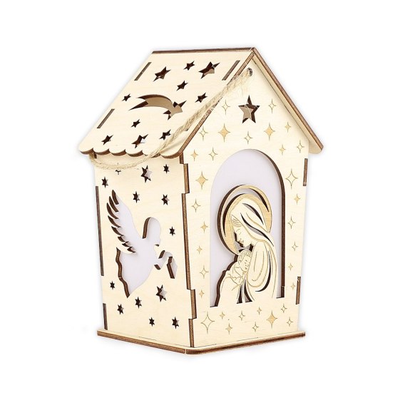 Lampion drewniany + lampka led 17cm BOŻE NARODZENIE