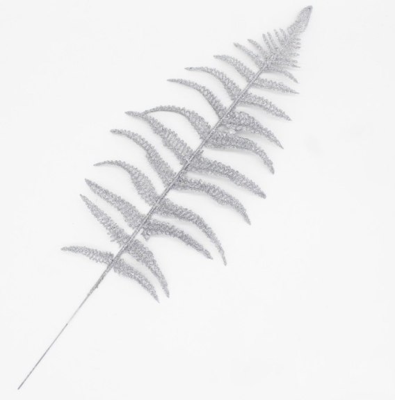 Liść palmy 10szt. obsypany brokatem 43 cm SREBRNY XVV-103Z