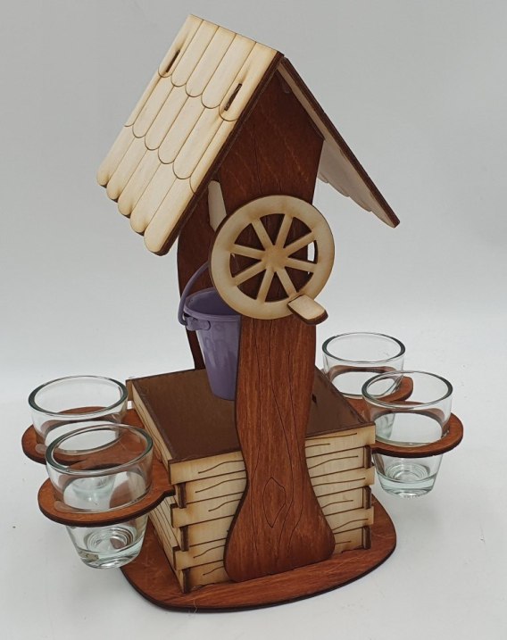 Studnia z wiaderkiem + 4 kieliszki