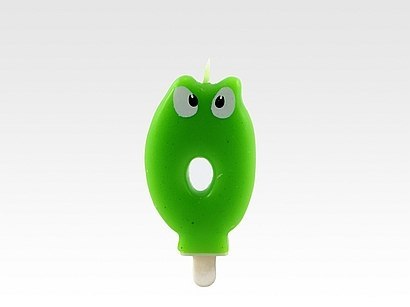 Świeczka "0" H:7,5cm ZIELONA Z OCZAMI 24 szt. 62-70