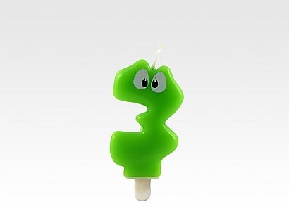 Świeczka "3" H:7,5cm ZIELONA Z OCZAMI 24 szt. 62-73