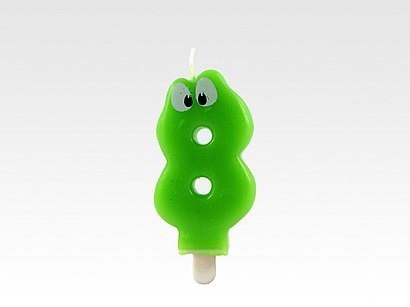 Świeczka "8" H:7,5cm ZIELONA Z OCZAMI 24 szt. 62-78