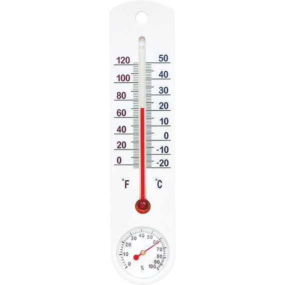 • Dwa w jednym - termometr, w którego dolnej części znajduje się higrometr do określania wilgotności powietrza w otoczeniu.